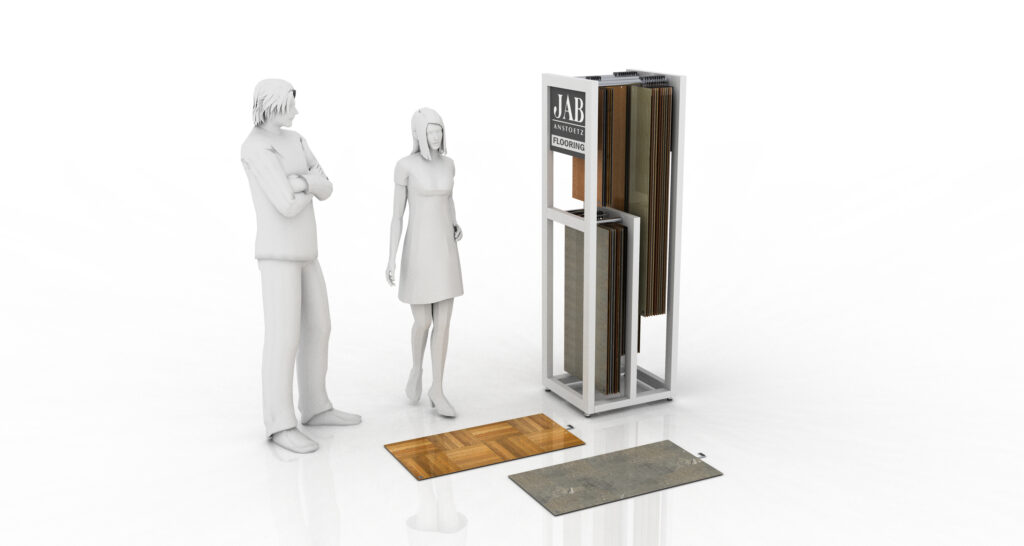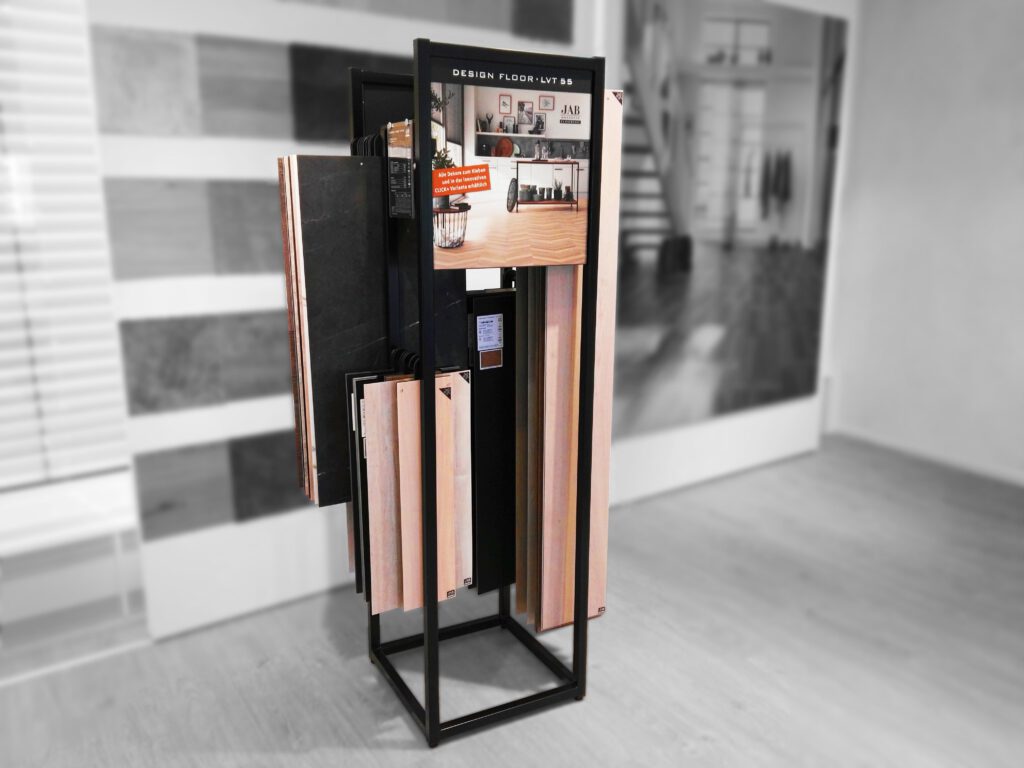 Dieses Display trägt auf kleinem Raum besonders schwere Venyl-Boden Muster. Diese können vom Hacken genommen werden und auf dem Boden betrachtet werden. Eine modulare Erweiterung wurde nicht realisiert.