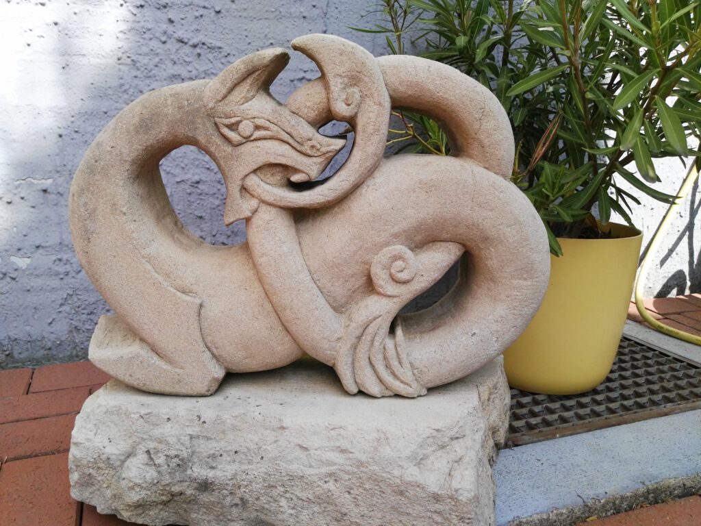 Drachenarmband nach Vorlage des selbst gehauenen Steindrachen. Echtsilber.