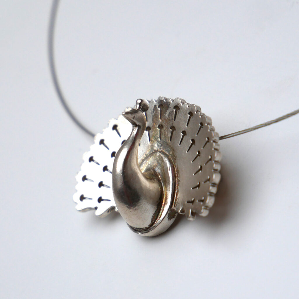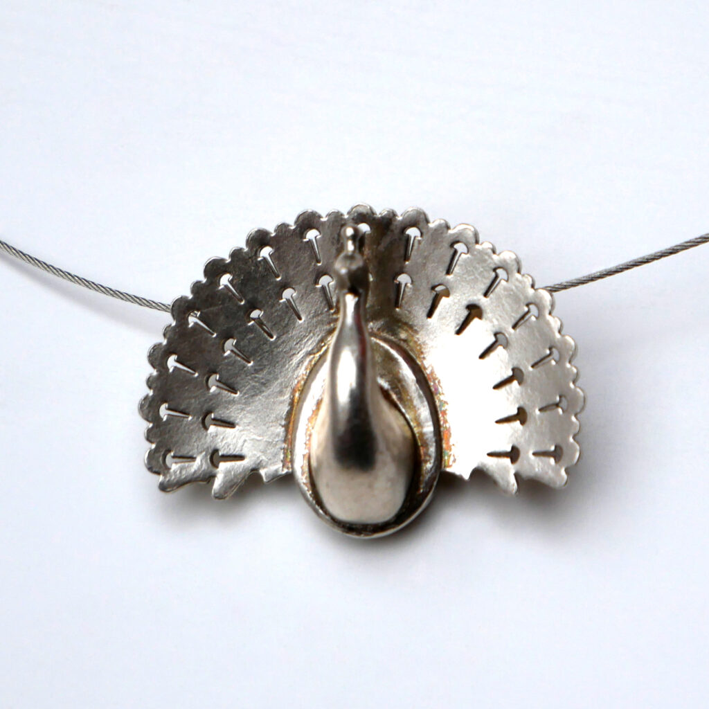 Kettenanhänger Pfau, Einzelstück. Echtsilber.